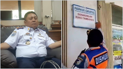 Sementara itu, dalam video yang viral di media sosial, petugas angkutan mencoret-coret papan pengumuman parkir gratis di sebuah minimarket. Petugas menutupi tulisan di papan itu dengan cat semprot.