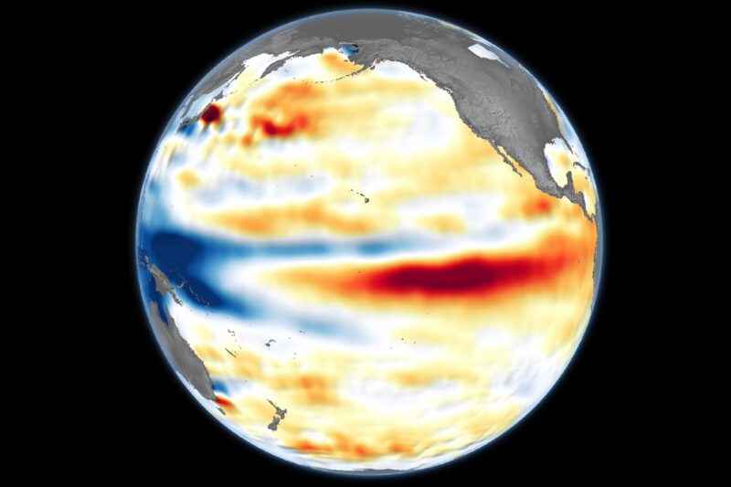 Data untuk peta tersebut diperoleh oleh satelit Sentinel-6 Michael Freilich dan diproses oleh Willis dan rekan-rekannya di JPL. Perhatikan bahwa sinyal yang terkait dengan siklus musiman dan tren jangka panjang telah dihilangkan untuk menyoroti anomali permukaan laut yang terkait dengan El Niño dan fenomena alam jangka pendek lainnya.
