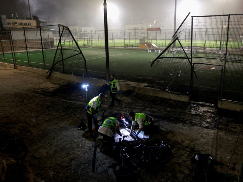 Kementerian Luar Negeri Israel pada hari Minggu menyalahkan Hizbullah atas serangan roket di lapangan sepak bola yang menewaskan 12 orang.