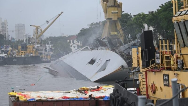 “Kapal itu miring parah di satu sisi (sisi kiri). Meski sudah berusaha sekuat tenaga, kapal itu tidak bisa kembali ke posisi tegak,” kata angkatan laut, seraya menambahkan bahwa pihaknya telah memerintahkan penyelidikan atas masalah tersebut.