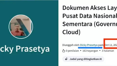 “Ini teror siber terhadap PDN. Diduga ada keterlibatan orang dalam karena ada potensi orang dalam membuka data ini. Jadi bisa dikatakan mereka bukan hacker hebat. Dari bahasa narasi permintaan maaf itu juga kedengaran seperti orang Indonesia,” imbuhnya. Dicky Prasetya Atmaja diketahui sengaja mengunggah dokumen rahasia negara di situs tersebut. Scribd sejak 2022