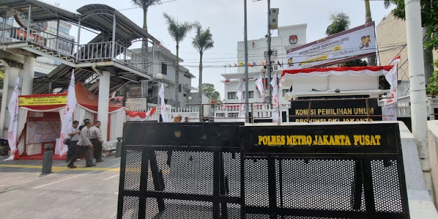 Pantauan RMOL di depan Kantor KPU DKI Jakarta, di Jalan Salemba Raya, Senen, Jakarta Pusat, Senin sore (19/8), terlihat ada pembatas beton yang menutupi pintu masuk.