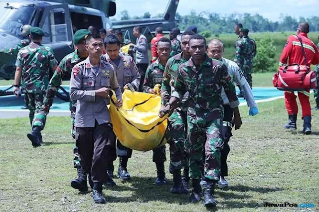 “Ya benar, berdasarkan hasil olah TKP ditemukan 9 lubang peluru di badan helikopter, baik di kaca bagian atas, rotor, propeller, maupun ekor helikopter. Selain itu ditemukan pula 6 selongsong peluru kaliber 5,56 mm di sekitar helikopter,” kata Bayu.