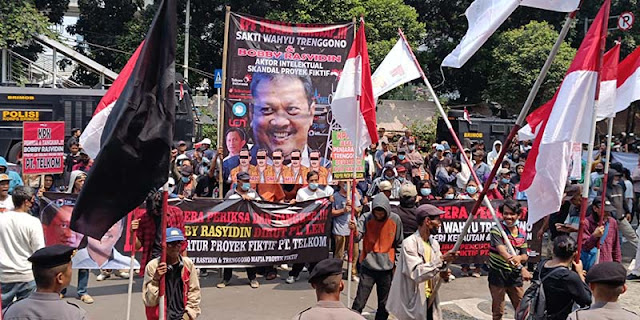 NewsRoom.id -Puluhan massa dari Front Gerakan Nasional (FPN) mendesak Komisi Pemberantasan Korupsi (KPK) segera menangkap Menteri Kelautan dan Perikanan Sakti Wahyu Trenggono yang dianggap sebagai aktor intelektual dalam skandal proyek fiktif tersebut.