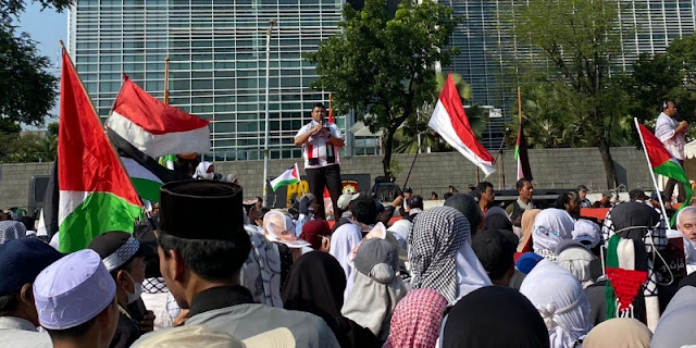“Kami menyerukan kepada masyarakat internasional untuk mendesak Israel mematuhi putusan hukum ICJ dan segera meninggalkan tanah Palestina,” kata Zaitun melalui pengeras suara di depan Kedutaan Besar AS, Jakarta, Sabtu (3/8).