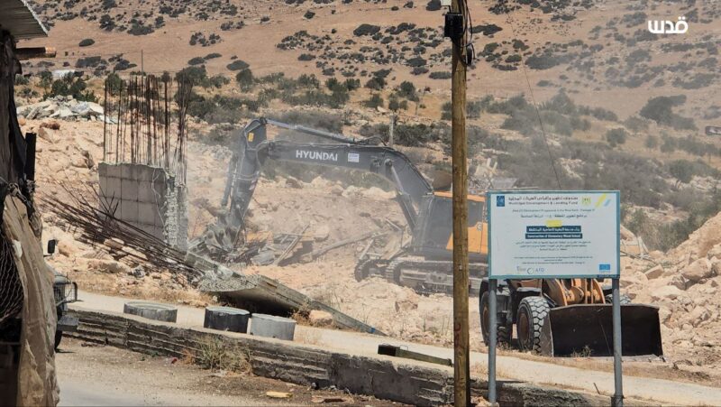 Azmi Balawneh, Direktur Pendidikan di Tubas, mengatakan bahwa pasukan Israel dengan buldoser menyerbu desa Al-Aqaba dan mulai merobohkan sekolah yang didanai Prancis yang sedang dibangun.