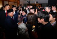 Mahasiswa dan warga menyambut kedatangan Presiden Prabowo Subianto di Beijing, Republik Rakyat Tiongkok (RRT), Jumat (11/8/2024), di lobi hotel tempatnya bermalam. (Foto: Setpres BPMI/…