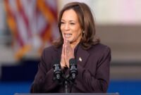 Wakil Presiden AS Kamala Harris menyampaikan pidato konsesi di televisi setelah kampanye besar-besaran yang gagal menghentikan kembalinya Donald Trump dari Partai Republik ke Gedung…