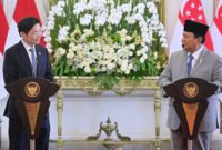 Presiden Prabowo Subianto dalam keterangan pers bersama usai pertemuan bilateral saat kunjungan resmi PM Singapura, di Istana Merdeka, Jakarta. (Foto: Setpres BPMI/Rusman) Presiden Prabowo…