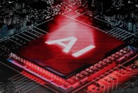 Layar menampilkan prosesor kecerdasan buatan (AI) selama Keynote 1 di MWC (Mobile World Congress), pameran seluler terbesar di dunia, di Barcelona pada 3 Maret…