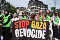 O2 Arena di London minggu lalu menolak masuk seorang pria karena mengenakan kaus bertuliskan dukungan terhadap Gaza, di tengah genosida yang dilakukan Israel di…