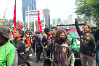 NewsRoom.id -Ribuan pengemudi ojek daring menggelar aksi unjuk rasa di Istana Negara, kantor Gojek di kawasan Petojo, Jakarta Selatan, dan kantor Grab di Cilandak,…