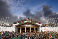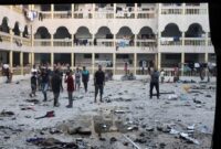 Kantong mayat berwarna putih berserakan di lantai dan suasana duka memenuhi udara setelah sebuah sekolah yang menampung warga Palestina yang mengungsi terkena rudal Israel…