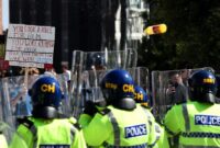 Para pengunjuk rasa bentrok dengan polisi dan demonstran sayap kiri di Manchester, Liverpool, dan puluhan kota lainnya. Demonstrasi sayap kanan berubah menjadi kekerasan di…