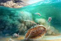 Rekonstruksi artistik dua spesies trilobita sesaat sebelum terkubur dalam aliran abu vulkanik 510 juta tahun lalu. Kredit: Prof. A. El Albani, Univ. Poitiers Penemuan…