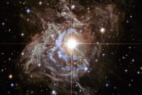 RS Puppis, salah satu bintang variabel Cepheid yang paling terang, secara berirama menjadi terang dan redup selama siklus enam minggu. Kredit: NASA, ESA, Hubble…