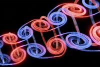 Penggambaran artistik dari lintasan melingkar yang serupa dengan struktur medan magnet NDSTP, di mana lingkaran melingkar di sisi kanan dan kiri masing-masing disorot dengan…