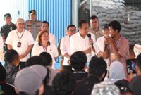 Presiden Jokowi meninjau stok beras dan menyerahkan bantuan cadangan pangan pemerintah di Kompleks Gudang Bukit Tunggal, Kota Palangkaraya, Kalimantan Tengah pada Rabu (26/06/2024). (Foto:…