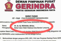 NewsRoom.id -Sehari setelah Reihana mendeklarasikan diri sebagai bakal calon Wali Kota Bandar Lampung dari Partai Gerindra, isi Surat Tugas yang diterima mantan Kepala Dinas…