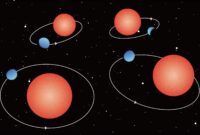 Diagram penemuan orbit planet ekstrasurya. Orbit eksoplanet yang dekat dengan bintang induknya cenderung berbentuk lingkaran seiring berjalannya waktu, namun ketiga eksoplanet yang baru ditemukan,…