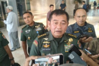 – KSAD Jenderal Maruli Simanjuntak menanggapi pertanyaan Mayjen TNI Achmad Adipati Karna Widjaya yang hadir saat penggusuran di lahan seluas 16,4 hektare depan Trans…